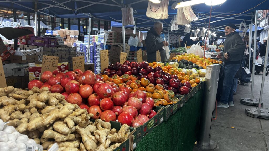 途中、偶然見つけたPublic Farmers Marketで新鮮な野菜やシーフードがずらり。