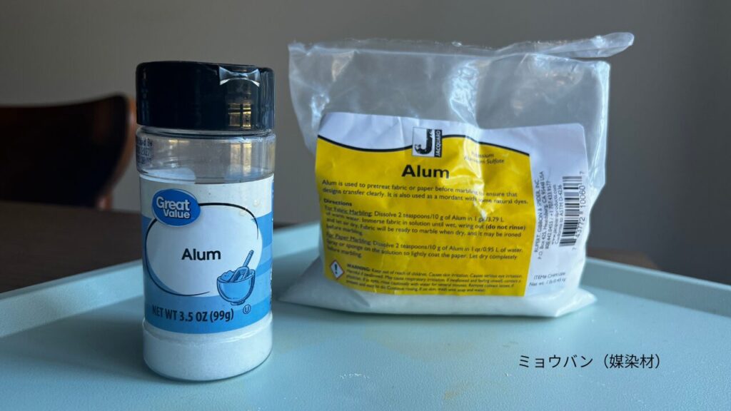 ミョウバンはAlumという名前で売られていて、左のサイズはスパイスのコーナーで見つけました。右はAmazonにて購入