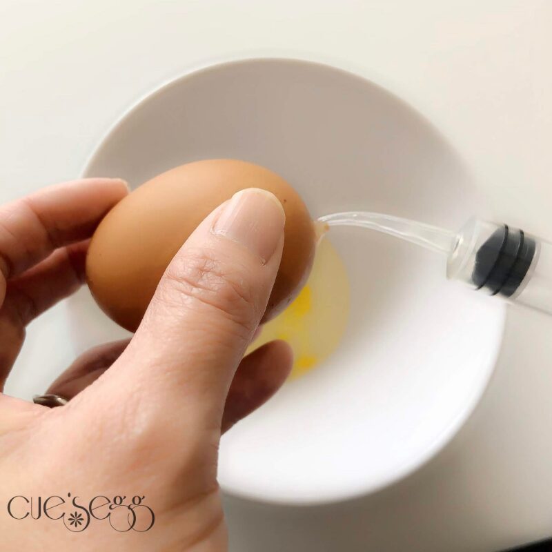一つ前のブログでは道具を使わない手法を紹介していますが、このように注射器のような道具で中身を取り出しています。(中身は毎回料理やお菓子作りに使います)